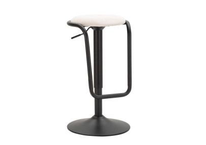 Tabouret de bar rond pivotant en métal et tissu rembourré, avec dossier rembourré. Réglage de la hauteur possible. Son design épuré rappelle les années 70.