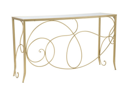 Console design en métal doré avec plateau en verre trempé noir. Ses lignes douces et fluides créent un meuble élégant et raffiné, idéal pour sublimer votre salon ou entrée.