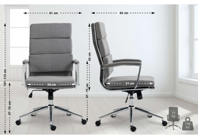 Le fauteuil de bureau Washington est réglable en hauteur grâce à un vérin à gaz et offre un confort optimal. Ses accoudoirs soulagent la pression sur les épaules et la nuque, tandis que son dossier ergonomique soutient le dos et les lombaires. Le mécanisme d'inclinaison soulage la pression sur les disques intervertébraux et son intensité est réglable par une molette située sous l'assise. Le revêtement en maille respirante assure un confort accru, même par temps chaud. L'appui-tête est recouvert de similicuir. La structure métallique robuste, montée sur roulettes, est chromée. Ce fauteuil au design moderne et épuré est disponible en sept coloris : bleu, vert, orange, rouge, noir, gris et blanc. Composition : 100 % polyuréthane. Détails : Hauteur totale : 110 à 118 cm | Largeur totale : 60 cm | Profondeur totale : 53 cm | Hauteur d'assise : 47 à 55 cm | Dimensions de l'assise (L x P) : 50 x 50 cm | Hauteur du dossier : 67 cm | Hauteur des accoudoirs : 22 cm Charge maximale admissible : 140 kg | Poids : 10 kg. Conseils d’entretien : Pour le nettoyage, nous recommandons l’utilisation d’eau savonneuse et d’un chiffon doux. Aspirer les surfaces uniquement avec l’embout adapté.