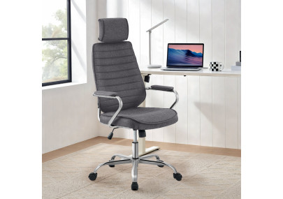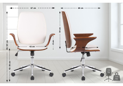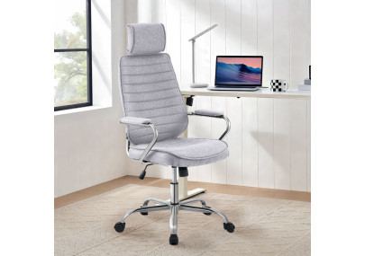 Le dossier ergonomique est doté d'un appui-tête. Ce fauteuil de bureau, réglable en hauteur, possède un mécanisme d'inclinaison à tension ajustable. L'assise peut également être bloquée en position fixe.