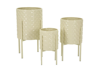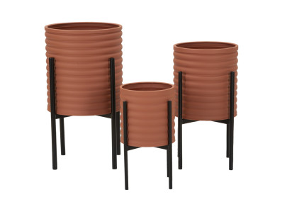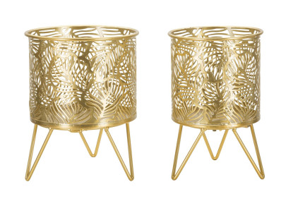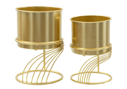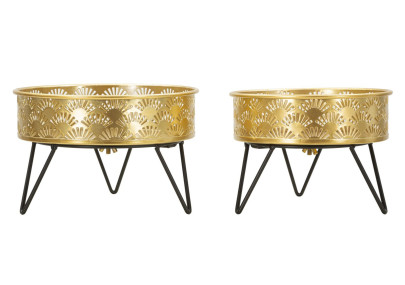 Cache-pot ovale en métal doré finement sculpté, avec support en métal noir. Ses lignes douces et sinueuses apportent une touche d'harmonie à n'importe quelle pièce.