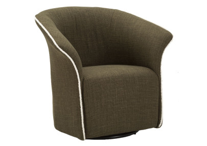 Fauteuil en tissu gris rembourré aux finitions dorées et pieds en bois noir aux détails dorés. L'élégance du noir et de l'or s'allie pour une détente confortable.