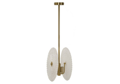 Plafonnier en métal doré aux lignes simples et essentielles, doté de 3 points lumineux en métal doré et en verre.