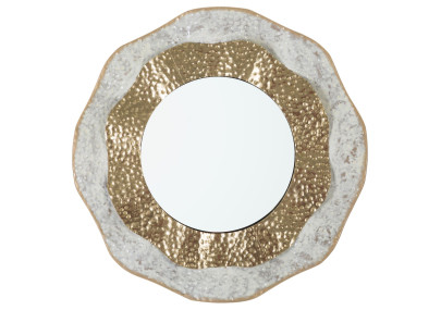 Miroir mural en métal doré et argenté, orné d'élégantes applications en métal doré et noir. Un mariage subtil d'élégance et de contraste.