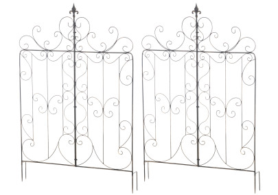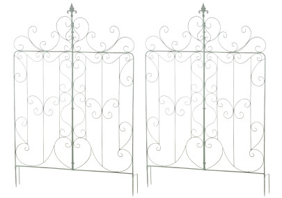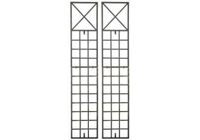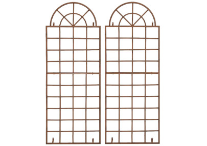 Treillis Elisa - Le support idéal pour les plantes grimpantes. Ce treillis rustique de style champêtre séduit par son design classique et ses ornements charmants. Parfait pour l'aménagement paysager, il est idéal pour mettre en valeur vos plantes et se suffit à lui-même. Le modèle Elisa est fabriqué artisanalement en fer. Livré dans son emballage d'origine, il est livré prêt à l'emploi. Il suffit de le planter dans le sol. Produit neuf. Dimensions approximatives : Hauteur : 100 cm, Largeur : 50 cm, Hauteur de la base : 12 cm, Épaisseur des barres : 0,7 cm.