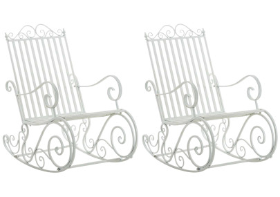 Les fauteuils à bascule Smilla, de style antique, vous invitent à la détente et au bercement, tout en attirant tous les regards ! Ces fauteuils en fer exclusifs deviendront la pièce maîtresse de votre décoration, que ce soit sur la terrasse, dans le jardin ou à l’intérieur. Leur design nostalgique et leurs finitions artisanales soignées séduisent. Utilisés comme sièges ou comme élément décoratif intemporel, ces fauteuils à bascule apporteront une touche d’élégance à votre intérieur. Deux magnifiques meubles dont vous profiterez pendant de nombreuses années.