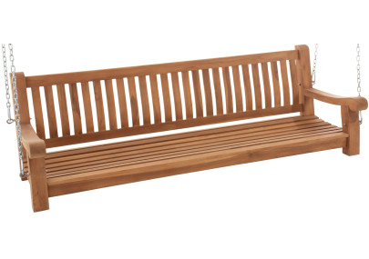 Le coussin d'assise est recouvert d'une housse Oxford 600D résistante, douce au toucher, amovible grâce à une fermeture éclair et lavable à 30 °C. Des sangles de fixation de 30 cm de long de chaque côté assurent un maintien sûr, même en cas d'utilisation fréquente. Grâce à la qualité de ses matériaux, la balancelle est résistante aux intempéries toute l'année et à l'humidité, au gel, aux moisissures et à la pourriture. Même sans traitement à l'huile de teck, elle conserve sa stabilité et sa durabilité, développant seulement une patine gris argenté. Le matériel de montage, comprenant des chaînes et des crochets robustes, est inclus.