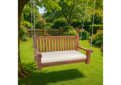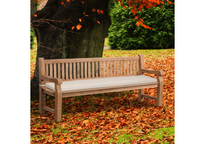Le teck, durable, résiste aux intempéries toute l'année : pluie, gel et neige ne l'altèrent pas. Sans huile d'entretien, le bois développe une patine gris argenté au fil du temps, tout en conservant sa stabilité et sa durabilité. Le coussin d'assise parfaitement ajusté, garni de mousse froide 30D de 8 cm d'épaisseur, offre un confort supplémentaire. La housse, en tissu Oxford 600D robuste, est douce pour la peau, résistante aux UV et munie d'une fermeture éclair. Elle est facilement amovible et lavable à 30 °C. Des sangles de fixation assurent un maintien sûr, même en cas d'utilisation fréquente. Idéal pour le jardin, la terrasse, le balcon ou la véranda – disponible en différentes tailles de banc et couleurs de coussins, convient pour 2 à 3 personnes.