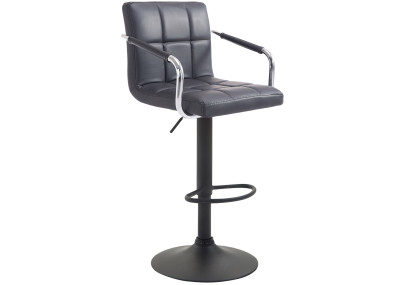 Ce tabouret séduit par son design élégant. L’assise est recouverte de similicuir facile d’entretien. Grâce à son vérin à gaz, ce modèle s’ajuste en continu à la hauteur souhaitée, ce qui le rend idéal pour tous les comptoirs. Le repose-pieds, qui assure un excellent confort d’assise, est réglable en même temps que l’assise. L’assise et le repose-pieds pivotent à 360°. La structure est disponible en finition chromée ou en métal noir. Des patins de protection sont placés sous le piètement trompette pour éviter les rayures sur le sol.