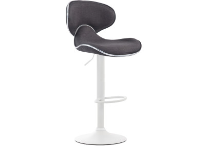La structure en métal noir mat avec piètement trompette garantit la stabilité nécessaire. Un vérin à gaz permet un réglage en hauteur progressif, s'adaptant ainsi facilement à toutes les hauteurs de comptoir. Le repose-pieds intégré, également en métal noir mat, assure une assise confortable et sécurisée, même pendant de longues périodes.