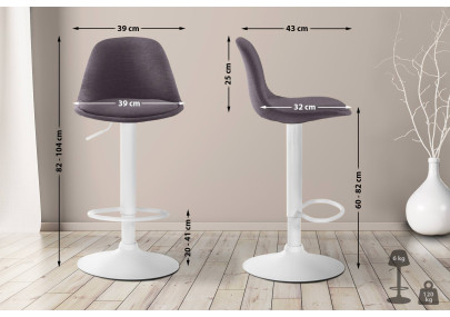 Ce tabouret de bar impressionne non seulement par son design, mais aussi par son confort. Son assise bien rembourrée est matelassée et recouverte d'un tissu facile d'entretien. Grâce à son dossier élégant qui se prolonge harmonieusement dans les accoudoirs, ce tabouret offre un excellent confort d'assise, même pendant de longues périodes. De plus, ce tabouret de bar pivotant à 360° est réglable en hauteur, ce qui le rend idéal pour toutes les tailles. Son piètement trompette en métal est doté d'un repose-pieds élégant pour un confort accru. La structure comprend également des patins de protection pour éviter les rayures et les dommages au sol. Un atout indéniable pour des moments conviviaux au bar.