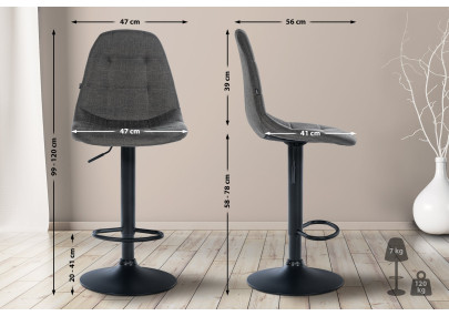 Ce tabouret de bar impressionne non seulement par son design, mais aussi par son confort. Son assise bien rembourrée est matelassée et recouverte d'un tissu facile d'entretien. Grâce à son dossier élégant qui se prolonge harmonieusement dans les accoudoirs, ce tabouret offre un excellent confort d'assise, même pendant de longues périodes. De plus, ce tabouret de bar pivotant à 360° est réglable en hauteur, ce qui le rend idéal pour toutes les tailles. Son piètement trompette en métal est doté d'un repose-pieds élégant pour un confort accru. La structure comprend également des patins de protection pour éviter les rayures et les dommages au sol. Un atout indéniable pour des moments conviviaux au bar.