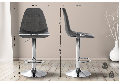 Les pieds trompette permettent une rotation à 360°. Chaque tabouret est également équipé d'un repose-pieds, garantissant une assise confortable même pendant de longues périodes. Les structures en métal noir sont réglables en hauteur et assurent une grande stabilité. Elles sont également munies de patins de protection pour éviter les rayures sur le sol. Grâce à leurs différentes combinaisons de couleurs et de matériaux, ces tabourets de bar sont un excellent choix pour la cuisine, le salon, le hall d'entrée ou la salle à manger. Composition : 100 % polyester (tissu et velours), 100 % polyuréthane (similicuir). Dimensions : Hauteur totale : 79 - 103 cm, Largeur totale : 43 cm, Profondeur totale : 49 cm, Hauteur d'assise : 58 - 82 cm, Surface d'assise (L x P) : 43 x 38 cm, Hauteur du dossier : 26 cm, Charge maximale : 135 kg