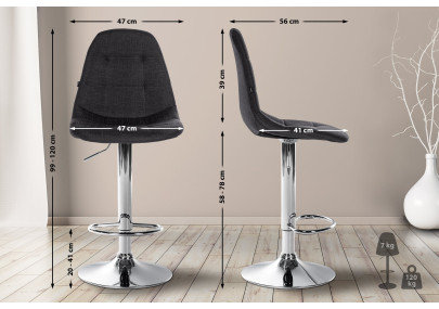 Sa structure robuste, disponible en métal chromé, noir mat ou blanc mat, avec une base ronde, garantit stabilité et durabilité. Le repose-pieds intégré offre un confort supplémentaire et une posture assise détendue. Des patins de protection sont placés sous la base trompette pour éviter les rayures sur le sol. De plus, les surfaces faciles d'entretien permettent un nettoyage et un entretien aisés de ce tabouret.