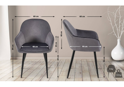 Le rembourrage confortable de l'assise et du dossier est essentiel pour un confort optimal. L'assise et le dossier sont entièrement recouverts d'un velours résistant et facile d'entretien.