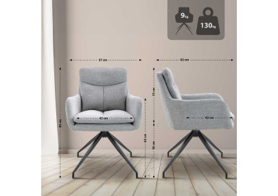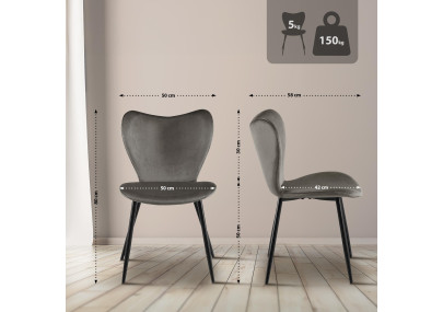 La chaise Rossford repose sur un robuste piètement à quatre pieds en métal noir thermolaqué. Ce piètement lui permet de supporter jusqu'à 150 kg. Les protections de sol empêchent d'endommager les sols sensibles.
