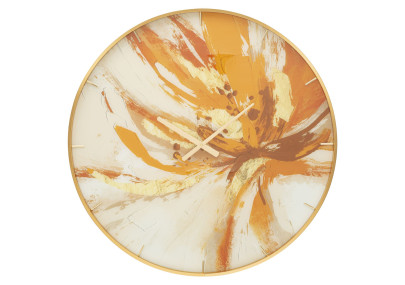 Elegante reloj de pared de metal dorado. Sus líneas sencillas y esenciales aportan un toque de elegancia a cualquier habitación.
