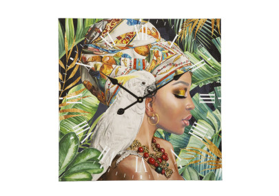 Reloj de pared redondo de metal y madera, compuesto por cuadrados regulares. Funciona con una pila AA (no incluida).
