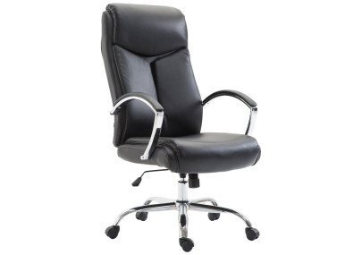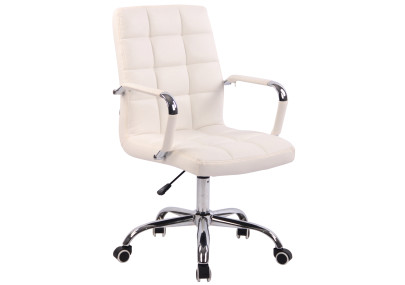 La silla de oficina Deli tienen un diseño moderno y simple, cuenta con un acolchado de alta calidad y un tapizado de cuero sintético, fácil de limpiar y cómodo. El asiento es regulable en altura y cuenta en su base de cruz con 5 ruedas deslizantes, estás dos características ofrecen gran libertad de movimientos. El soporte de la silla es de metal en efecto cromado brillante que le da la resistencia necesaria a la unidad. La silla es ideal para oficinas, salas de conferencias, en el hogar en la zona de estudio o trabajo.