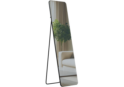 El espejo de pie ovalado Nane combina elegancia y funcionalidad. Su forma ovalada y su robusto marco metálico le confieren durabilidad y estabilidad. Con una altura de 155 cm y una superficie de 113 x 33 cm, ofrece una visión completa, ideal para peinarse y comprobar el atuendo a diario.