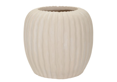 Maceta redonda con elegantes decoraciones en relieve ondulado.