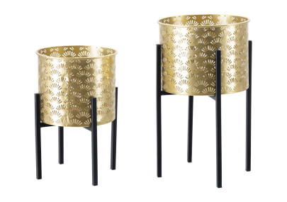Pequeña mesa redonda de metal dorado con líneas sencillas y esenciales, con tapa de cristal espejo.