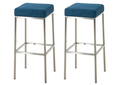 Juego de 2 taburetes Gibson: Los taburetes Gibson destacan no solo por su diseño moderno, sino también por la excepcional comodidad que ofrecen. Los asientos están suavemente acolchados y los respaldos brindan soporte lumbar. Los reposapiés permiten apoyar los pies. Su elegante apariencia se debe a la combinación de una estructura negra mate y una moderna tapicería. Están disponibles con tapicería acolchada o de terciopelo en varios colores. La robusta estructura metálica de cuatro patas garantiza la estabilidad de los taburetes y soporta fácilmente un peso de hasta 150 kg. Gracias a los protectores de suelo bajo las patas, los suelos delicados no se dañarán. Composición del material: 100 % poliéster. Dimensiones: