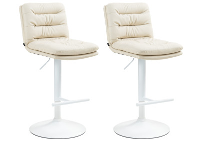 Estos taburetes destacan por su elegante diseño. El asiento está tapizado en terciopelo y cuenta con elaboradas costuras decorativas. Gracias a su elevador de gas, este modelo se puede ajustar a la altura deseada, lo que lo hace ideal para cualquier barra. El reposapiés, que garantiza una excelente comodidad, se ajusta en sincronía con la altura del asiento. Tanto el asiento como el reposapiés giran 360°. La estructura es de metal y cuenta con protectores para el suelo bajo la base acampanada para evitar rayaduras.