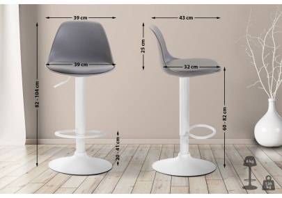 La estructura metálica regulable en altura permite encontrar la altura perfecta, y la función giratoria de 360 grados proporciona una gran libertad de movimiento. El reposapiés integrado ofrece mayor comodidad. Además, el taburete incluye protectores para el suelo que protegen incluso las superficies más delicadas. Composición: 100% poliuretano. Detalles: Altura total: 99 - 120 cm; Ancho total: 47 cm; Profundidad total: 56 cm; Altura del asiento: 58 - 78 cm; Superficie del asiento (Ancho x Profundidad): 47 x 41 cm; Altura del respaldo: 39 cm; Altura del reposapiés: 20 - 41 cm; Carga máxima: 120 kg; Peso: 7 kg