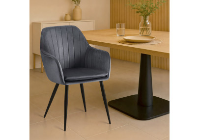 Este conjunto de 4 sillas Tanna de terciopelo combina estilo y comodidad al sentarse. Sus asientos tipo sillón convencen por su diseño moderno y su excepcional comodidad, garantizada por los reposabrazos elevados y los respaldos acolchados. El tapizado de terciopelo de fácil cuidado permite una limpieza rápida y sencilla de cada silla.