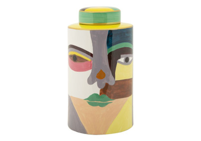 Un vaso dalla forma rotonda e accattivante, reso unico dal suo decoro di ispirazione cubista e dai suoi colori intensi e vibranti. Perfetto da solo o in abbinamento agli altri vasi della collezione per creare spazi creativi e ricchi di personalità.