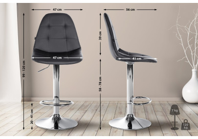 Lo schienale e i braccioli integrati offrono ulteriore comfort di seduta e una postura rilassata. Lo sgabello da bar è regolabile in altezza in modo continuo, consentendo di impostare l'altezza della seduta tra 58 e 83 cm. La funzione girevole a 360 gradi consente movimenti senza sforzo. Grazie al poggiapiedi integrato, le gambe possono essere alleggerite.