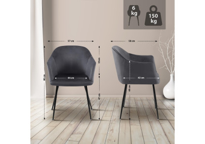 Questo set di 4 sedie Tanna in velluto unisce stile e comfort di seduta. Le loro sedute in stile poltrona seducono con il loro design moderno e il comfort eccezionale, garantito dai braccioli rialzati e dagli schienali imbottiti. Il rivestimento in velluto facile da pulire consente una pulizia rapida e semplice di ogni sedia.