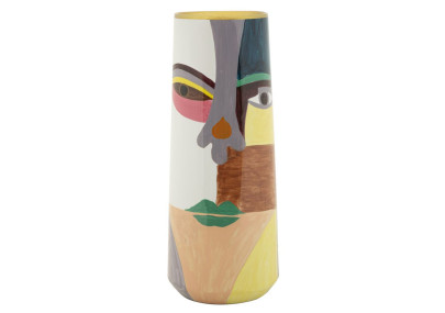 Um vaso com forma redonda e apelativa, tornado único pelo seu decor inspirado no cubismo e pelas suas cores intensas e vibrantes. Perfeito sozinho ou em combinação com os outros vasos da coleção para criar espaços criativos e cheios de personalidade.