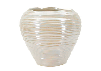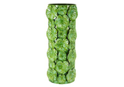 Um vaso compacto mas de grande efeito visual. A sua forma esférica, a sua textura trabalhada e o seu acabamento verde vivo tornam-no num objeto ideal para uma decoração com um estilo fresco e contemporâneo.