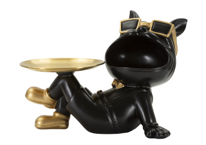 Elegante escultura preta com acabamento dourado em forma de rainha de xadrez.