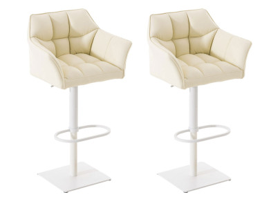 Este conjunto de quatro banquetas de bar transforma qualquer cozinha ou sala de jantar em um bar elegante. Os assentos estofados em tecido convidam você a relaxar confortavelmente. O conforto moderno é aprimorado por um apoio para os pés que se ajusta sincronizadamente com o assento. Ambos podem girar 360° juntos. Além disso, a estrutura metálica com altura ajustável permite o ajuste individual da altura do assento. O conjunto possui base em formato de trombeta. Graças aos protetores de piso, o conjunto é adequado para revestimentos de piso sensíveis, como azulejos ou parquet. Disponível em seis cores atemporais, o conjunto de 2 banquetas de bar Lentini em tecido cria uma atmosfera elegante e convidativa.