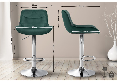 A elegante e estilosa banqueta de bar Jerry Velvet impressiona com sua base ajustável em formato de trombeta e apoio para os pés combinando, garantindo uma experiência confortável ao sentar. A altura da banqueta pode ser ajustada de forma fácil e rápida às suas necessidades, adaptando-se perfeitamente à sua mesa ou balcão. A banqueta também gira 360°, permitindo que você se movimente livremente.