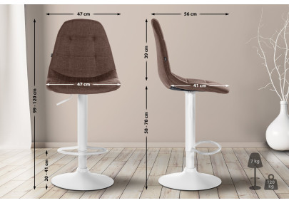 Este conjunto de banquetas combina elegância atemporal com funcionalidade moderna. Os assentos de madeira com formato elegante são revestidos com um material de alta qualidade, disponível em couro sintético ou tecido, para proporcionar conforto mesmo após longos períodos de uso. Os assentos giram 360° e possuem ajuste de altura contínuo através de um pistão a gás localizado na parte inferior. A estrutura robusta de metal, com formato de uma elegante base em forma de trombeta, oferece não apenas uma estética moderna, mas também extrema estabilidade e segurança. O apoio para os pés integrado proporciona conforto adicional e promove uma postura saudável. O protetor de piso sob a base em forma de trombeta evita que as banquetas deslizem e não deixa marcas ou arranhões no chão.