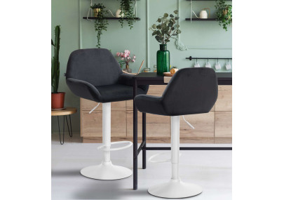 A estrutura metálica e a base em formato de trombeta garantem estabilidade e durabilidade. O apoio para os pés integrado se ajusta à altura do assento e oferece suporte adicional. O assento em couro sintético é fácil de limpar e durável. Os protetores de piso evitam arranhões.