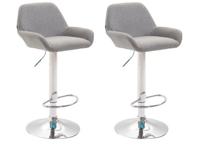 A estrutura da banqueta e o elegante estofamento conferem a ela uma aparência sofisticada. O assento é revestido com tecido durável e de alta qualidade. A estrutura metálica possui altura ajustável e a função giratória de 360 graus garante ampla liberdade de movimento.