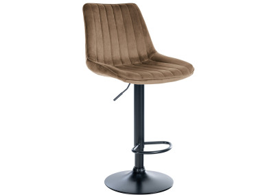 A estrutura da banqueta e o estofamento moderno conferem-lhe uma aparência elegante. O assento é revestido em veludo sofisticado. A estrutura metálica tem altura ajustável e a função giratória de 360 graus garante ampla liberdade de movimento.