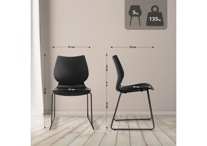 Estas cadeiras de sala de jantar são construídas sobre uma robusta base de quatro pernas em metal preto com revestimento a pó. Isto permite que as cadeiras Antibes suportem facilmente até 150 quilogramas. As proteções para o chão preservam os pisos delicados.
